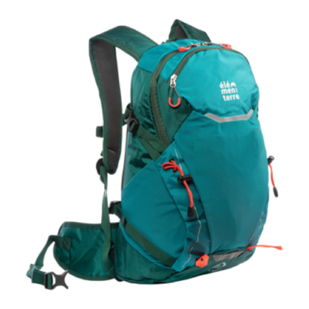 Las correas de compresión laterales, el cinturón y la correa de pecho ajustable con silbato integrado aportan seguridad y estabilidad. Incorpora un soporte para bastones y un asa de transporte, haciendo de esta mochila una opción práctica y versátil para cualquier excursión.