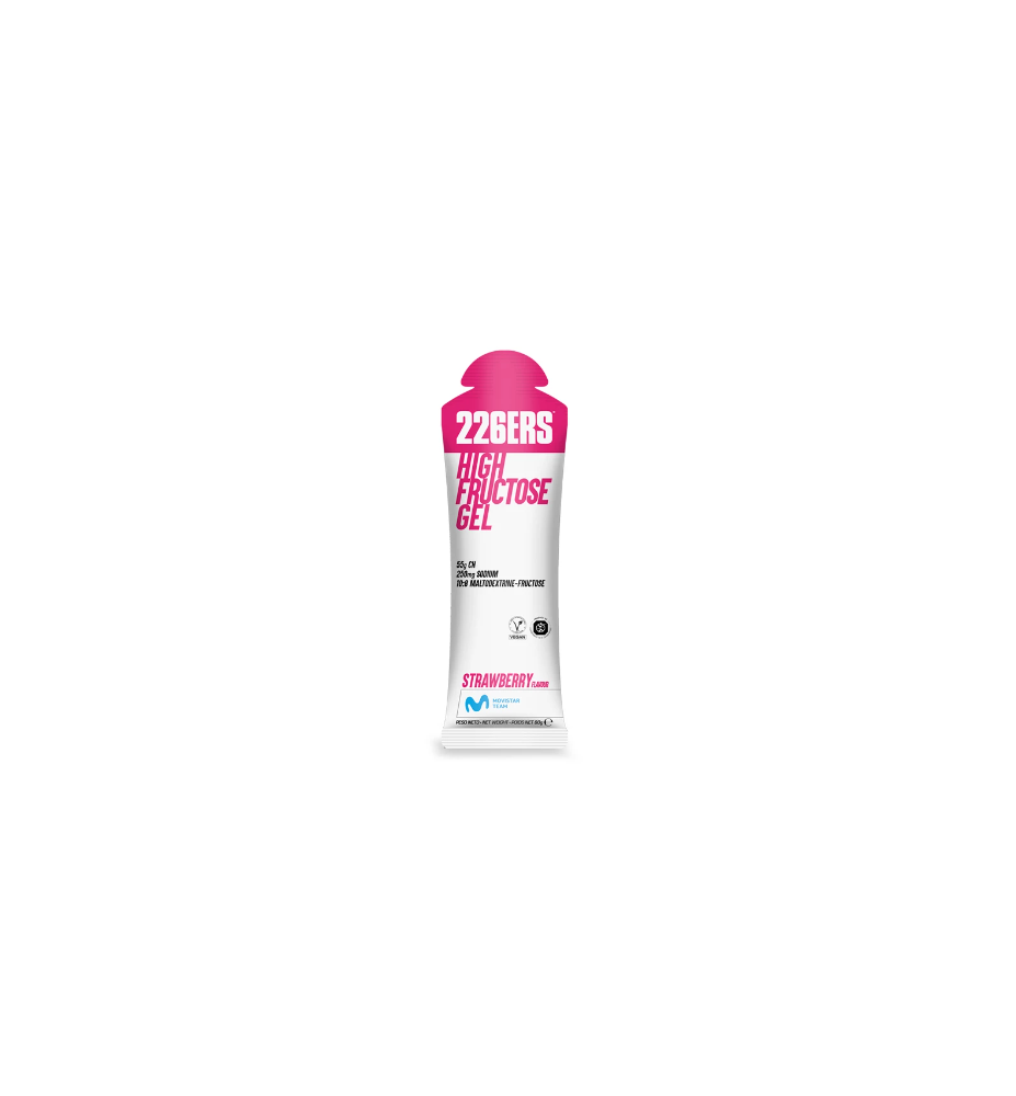 High Fructose Gel aporta 55g de aporte de hidrato de carbono y 250 mg de sodio por gel que provienen de la maltodextrina y de la fructosa, con una proporción 10:8.