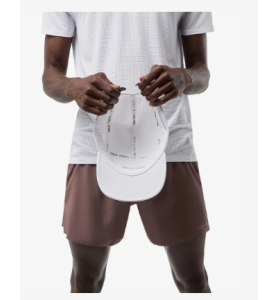 Esta gorra ultraligera, confeccionada con cinco tejidos diferentes y con una visera corta y plegable, proporciona una termorregulación óptima y protección solar durante tus carreras más intensas.