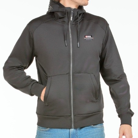 -Con puños y bajo en canalé elásticos, la sudadera asegura un ajuste cómodo y seguro, evitando el paso del frío. Además, cuenta con un bolsillo frontal que proporciona espacio adicional para guardar pequeños objetos o para mantener las manos calientes.
