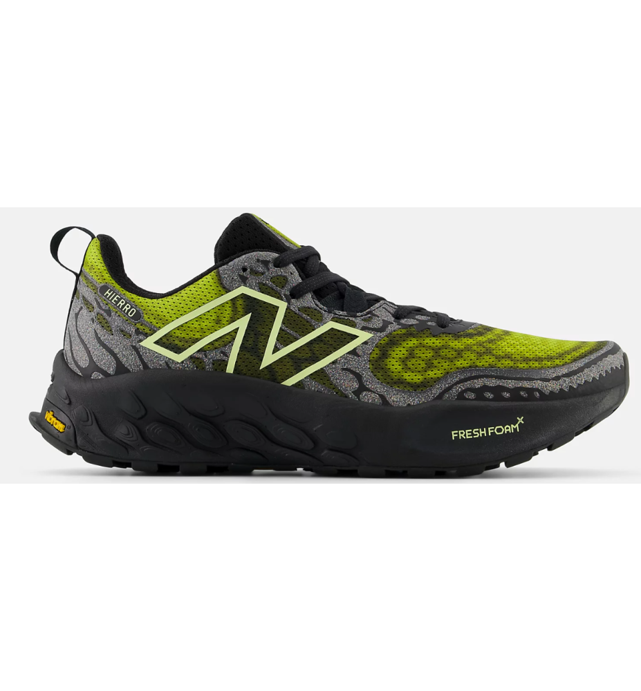 La Fresh Foam X Hierro v8 emplea una suela Vibram® para crear una capa protectora de durabilidad y tracción alrededor de la amortiguación Fresh Foam X y un empeine transpirable y ligero.