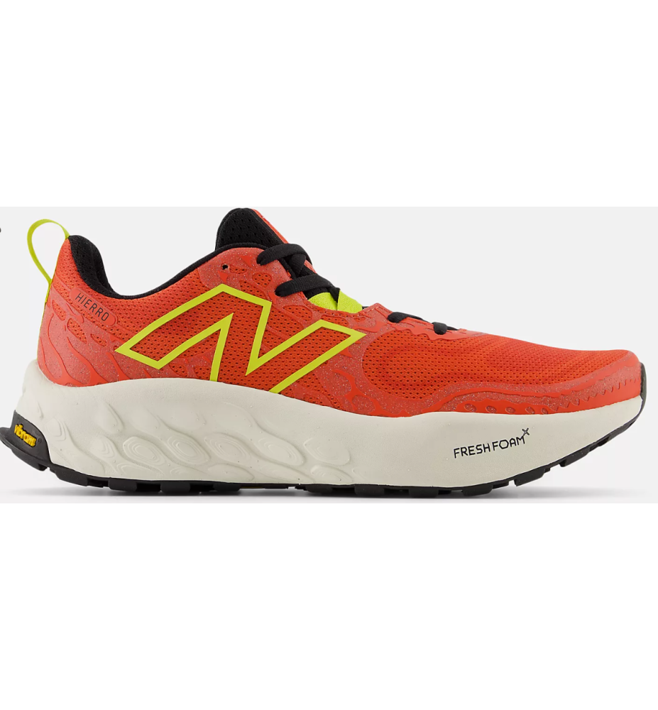 La Fresh Foam X Hierro v8 emplea una suela Vibram® para crear una capa protectora de durabilidad y tracción alrededor de la amortiguación Fresh Foam X y un empeine transpirable y ligero.